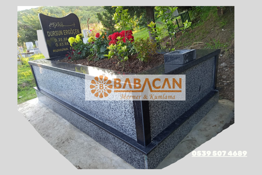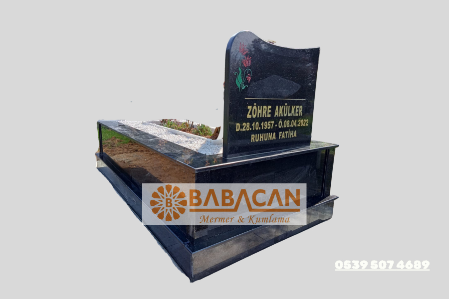 -- Siyah Granit Bant Detaylı Mezar